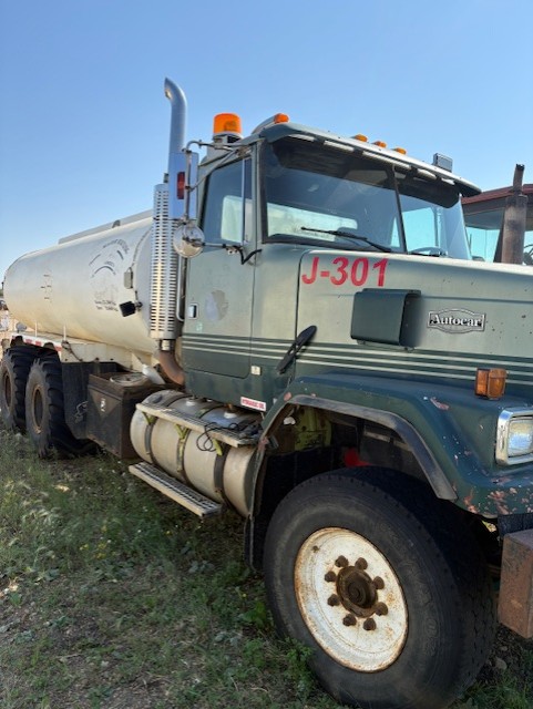 1991 Auto Car Water Truck 3406 Cat rebuilt engine. In-frame engine. New Aluminum water tank – 90 barrel. Floater tires and highway tires. Two axles.
