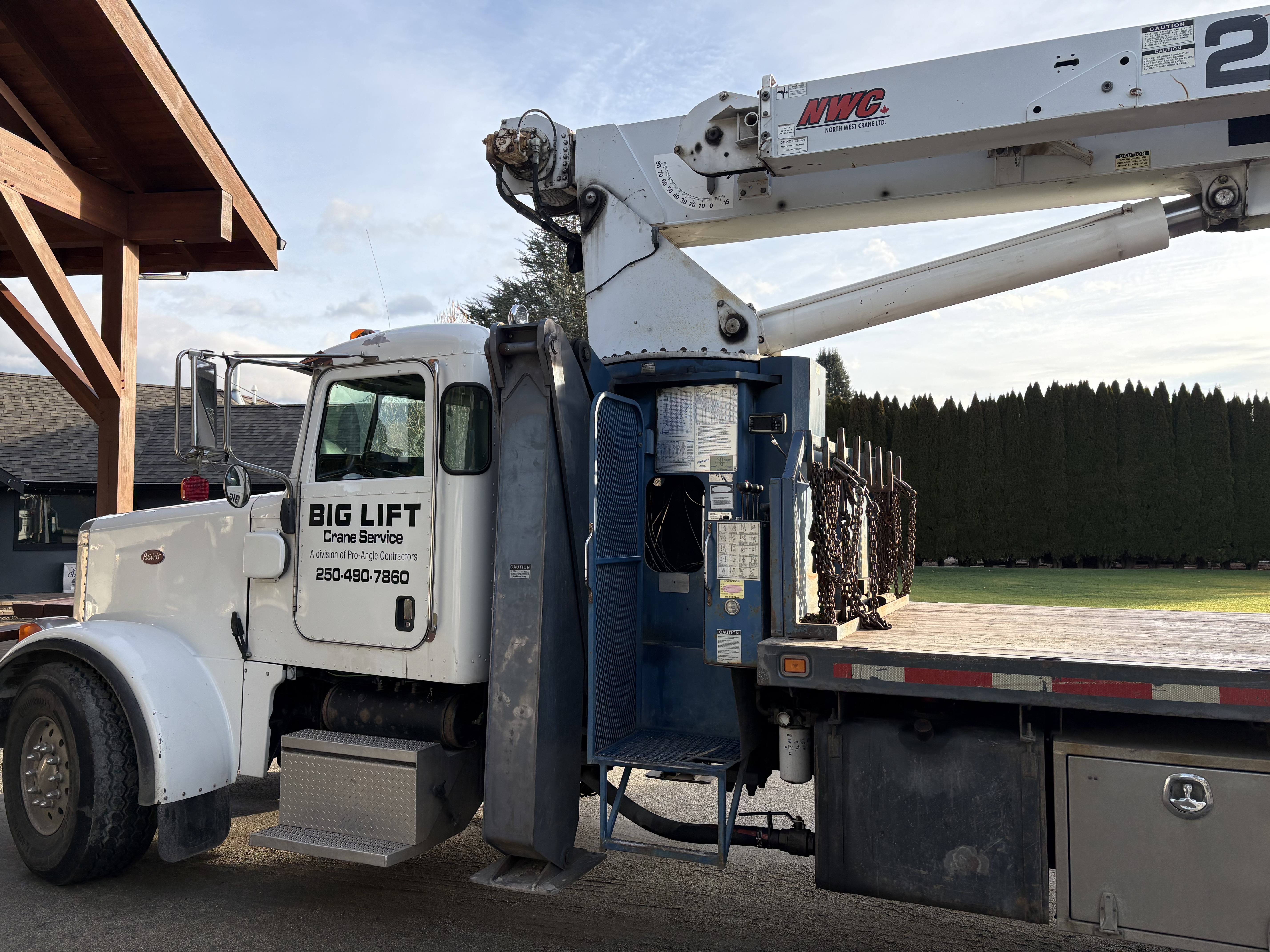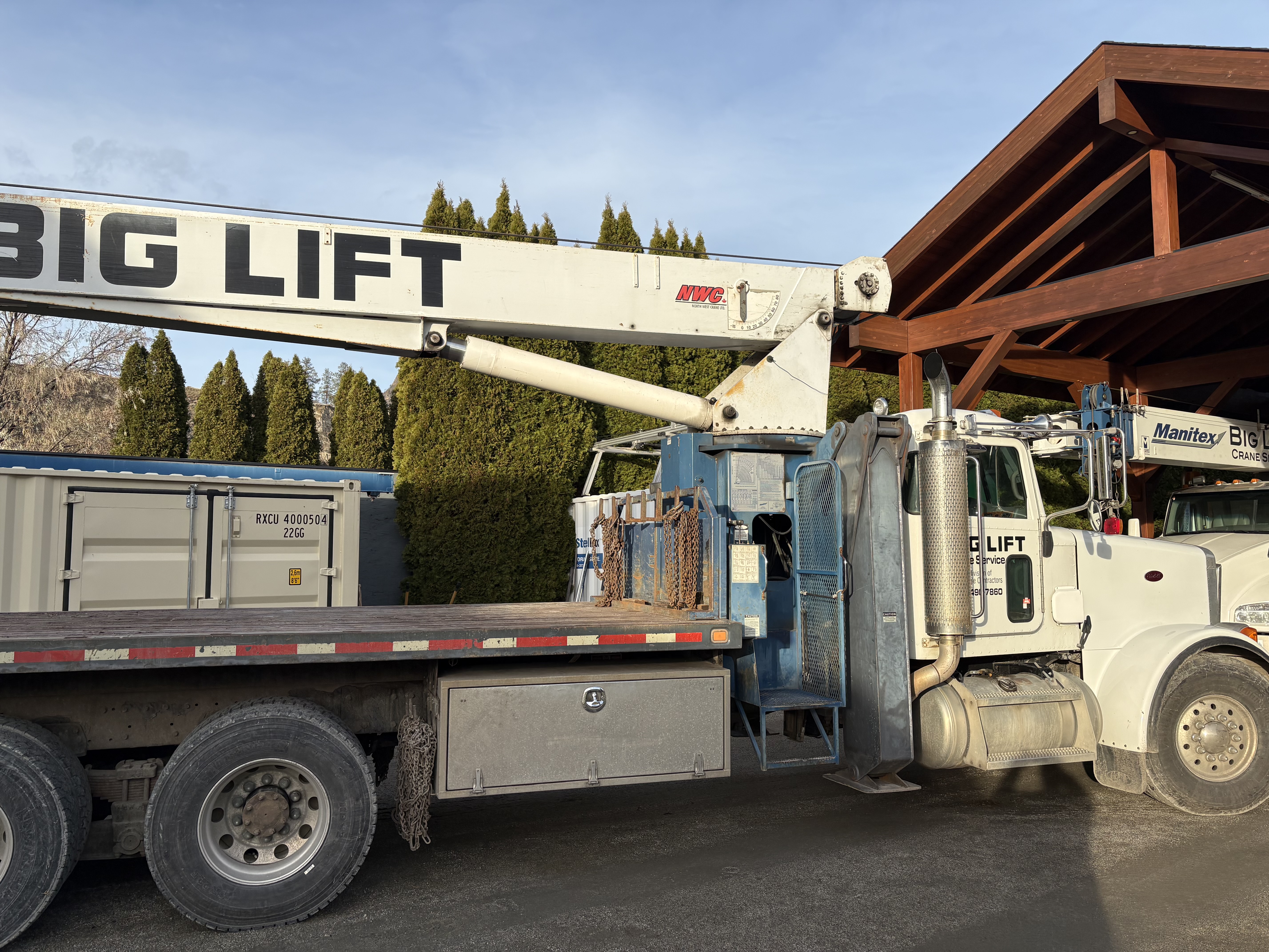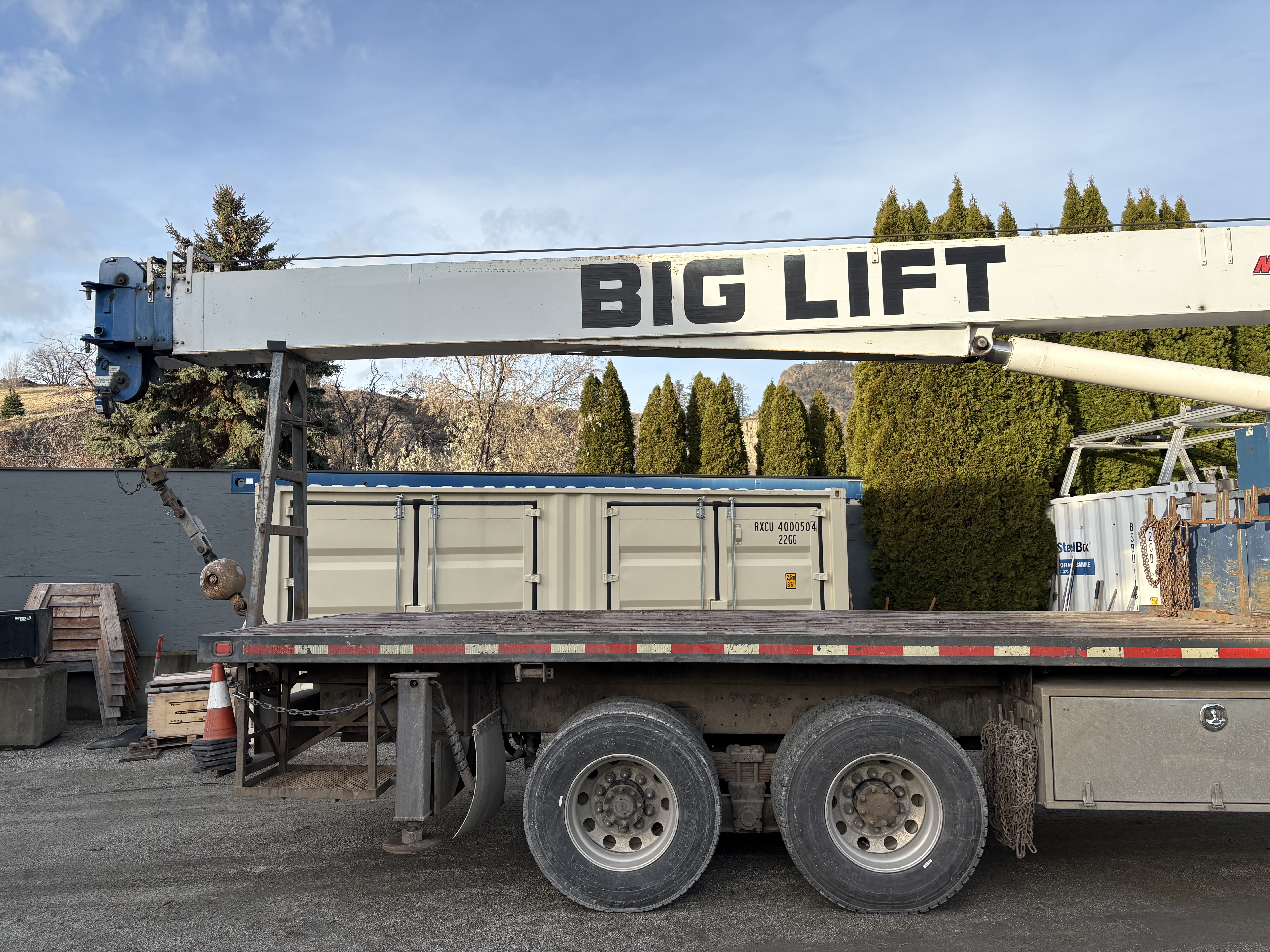 Manitex 2892 92' Main c/w 26' jib 10,200hrs A Frame outriggers and front jack out/down rear 7 ton swivel ball and block 20' deck. new fir deck 3 tool boxes Fuller 13 speed Dana 41's rears 141,000 miles Central Okanagen